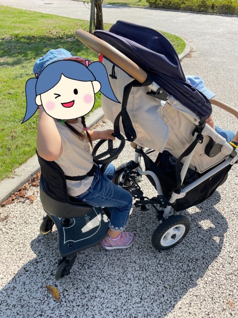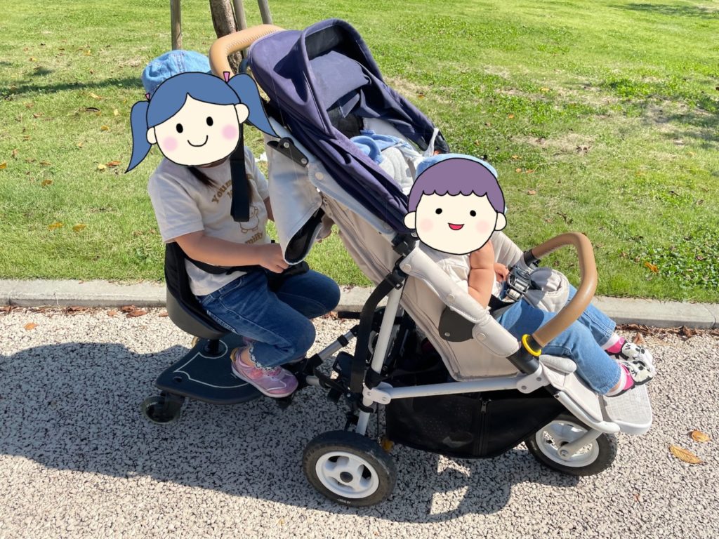 ずーっと抱っこしているとパパもママも疲れてしまうので、あおすみパパがおススメするのはベビーカーに付けられるボードです。