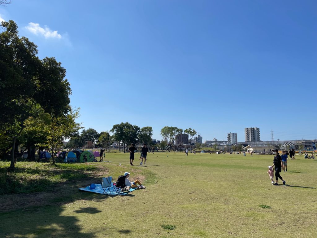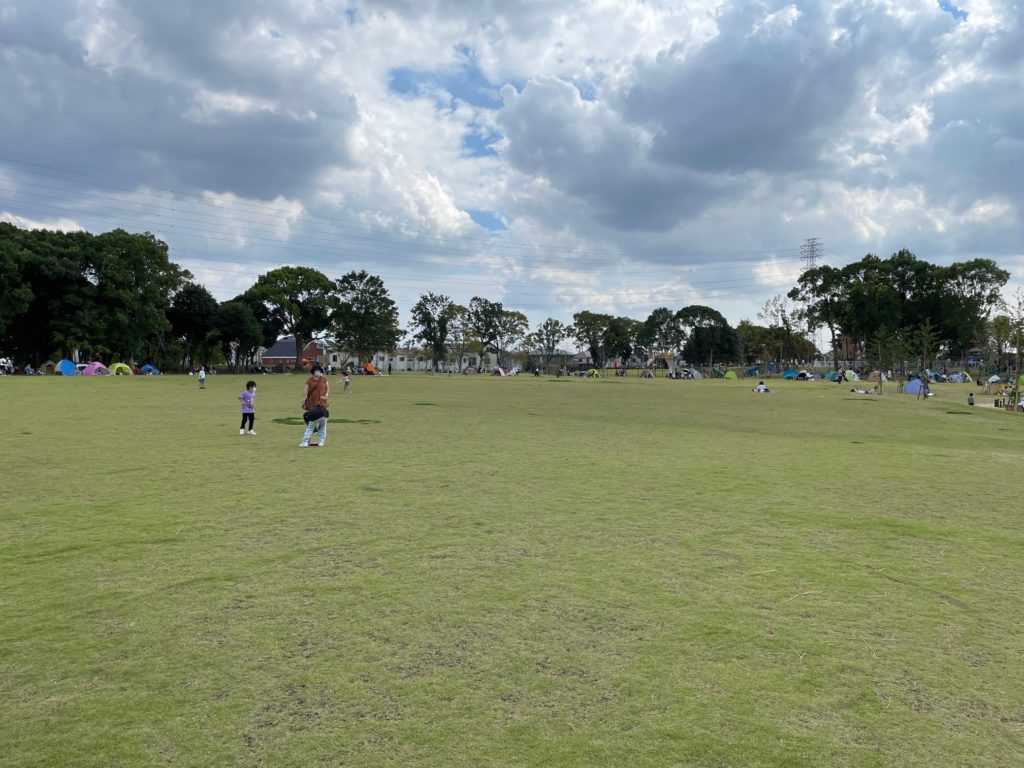 ご覧のとおり、ひろーい原っぱになっていますので、ボール遊びをしたり、フリスビーをしたり、追いかけっこをしたり、シャボン玉をしたり、色々な遊び方ができます。