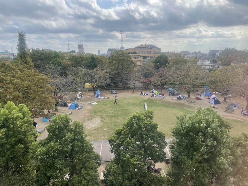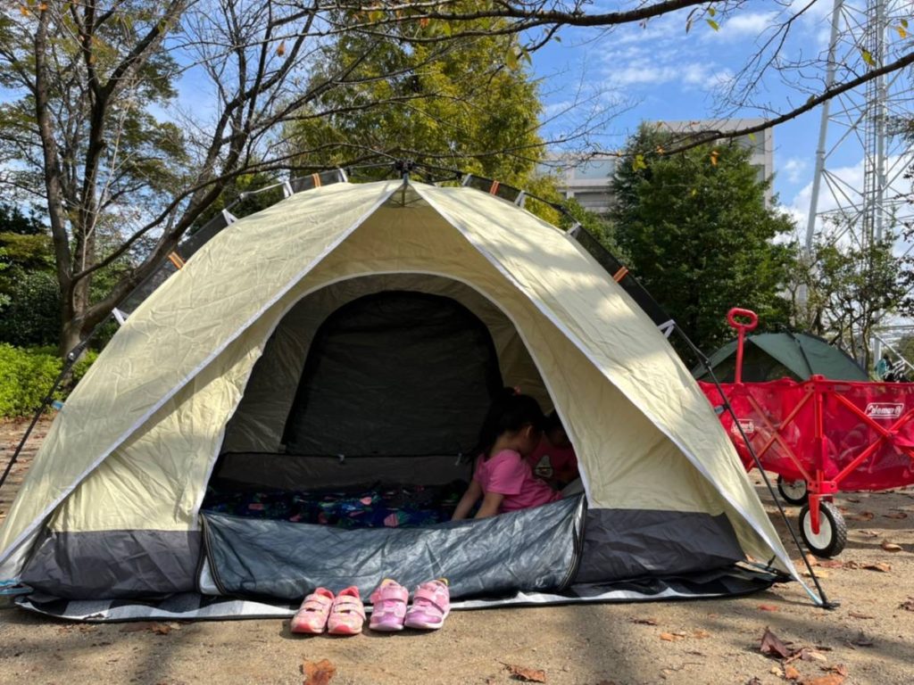 グリーンセンターには、あまり広くありませんが「さくら広場」というエリアがあり、ここはテントの設営OKとなっています。