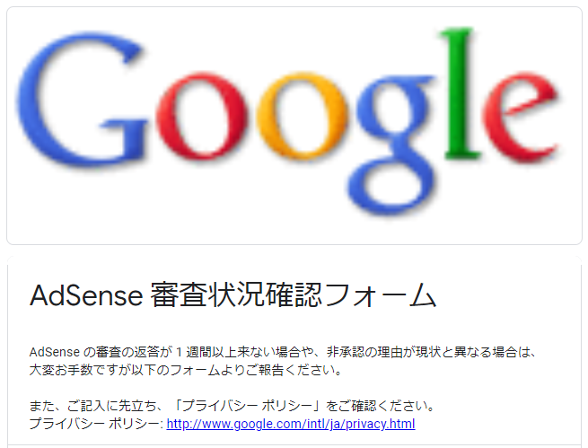 「Adesense 審査状況確認フォームに問い合わせるといいよ!」
