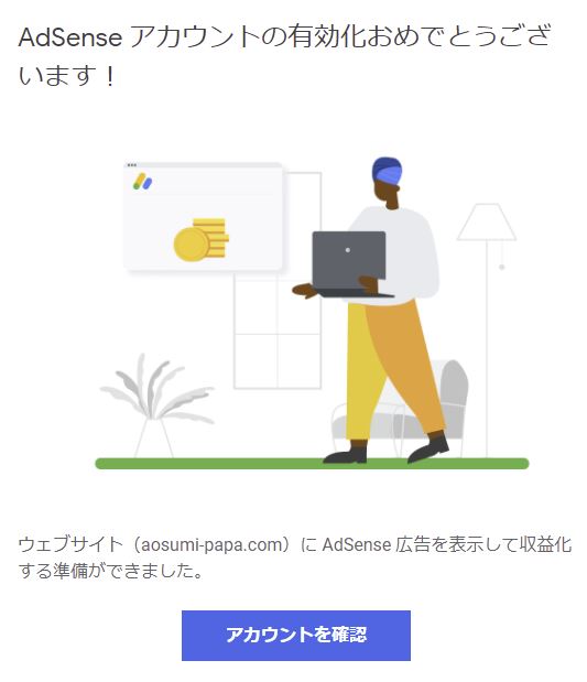 と思い始めていた矢先、申請から1週間ほどしてGoogle Adsenseからメールが。